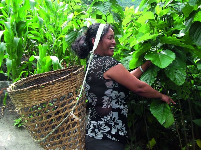Dulia, from Yunnan province in China, harvests mulberry leaves to feed silkworms. As part of a Salvation Army project, mulberry trees were planted along the river instead of maize, which has shallow roots and is pulled up every year, leading to landslides when the rains come. The mulberry trees have good root systems and are left in place from year to year. Since the trees were planted there has been a noticeable reduction in landslides.