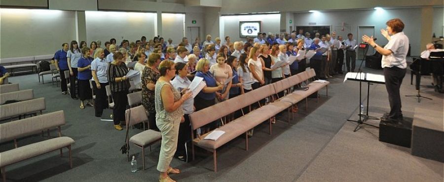 Vocalists from around the division preparing for their perfomance with the International Staff Songsters, who visited Perth last weekend.