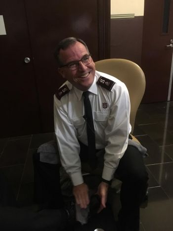 One recipient, Captain Pete Brookshaw (pictured right) was happy with the quality of the shoe-shine he received from Colonel Campbell. “These moments are worth laughing about, like, ‘Hi Floyd, how’s your sole?’”, but on a more serious note he added, “With the introduction of the new national vision of The Salvation Army, it’s crucial for Salvos on the frontline to know that we have leaders who have a heart to serve!”