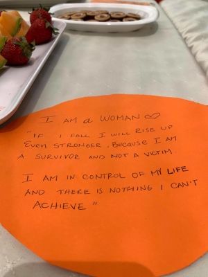 Women at the service had hand-written and decorated cards for the table, some sharing their stories, some using uplifting quotes. One read: “I am a woman. If I fall, I will rise up even stronger, because I am a survivor and not a victim. I am in control of my life and there is nothing I can’t achieve.”