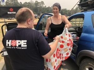 Further south in Bega, Corps Officer Captain Rod Parsons said God’s presence had been felt during the emergency operations at Bega Evacuation Centre. Despite the demands of feeding 3000 displaced people on Saturday 4 January, the combined churches held an impromptu prayer meeting, which was attended by around 100 people.