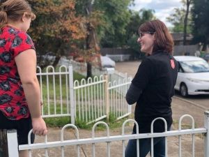 Carissa Ainsworth (right), the Greater West Youth, Children and Families Ministry Coordinator, responded to a prompting from God and hit the streets during the COVID-19 restrictions to be a listening ear at the front door or front gate of families that she usually only sees during corps-based programs.